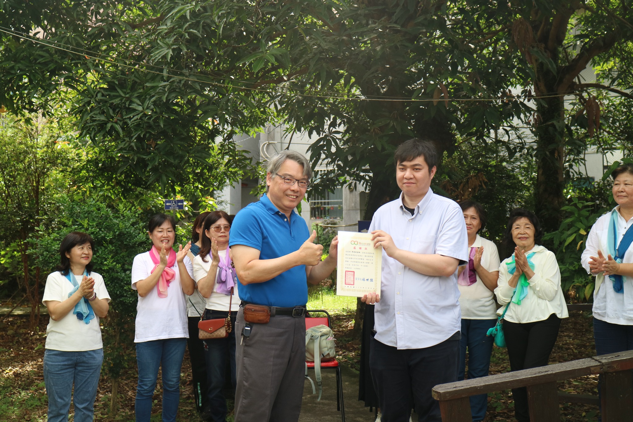 活動結束前,團員們還貼心地送上象徵祝福的壽桃,祝願每位長輩都能健康平安、笑口常開。