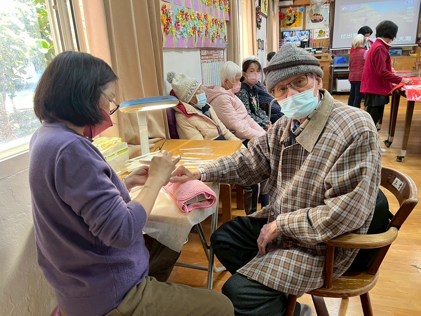 首先感謝來自埔里的三民路20號頭毛店理髮師到場為長輩義剪;也謝謝台中的彩逸美甲美甲師,細心協助長輩修剪指甲,讓大家在過年前打理好儀態、精神滿滿。